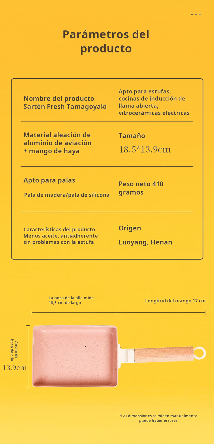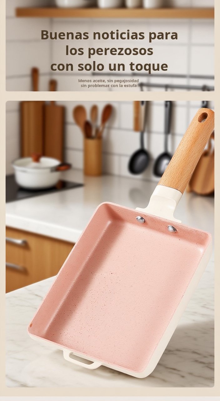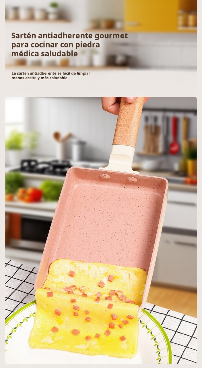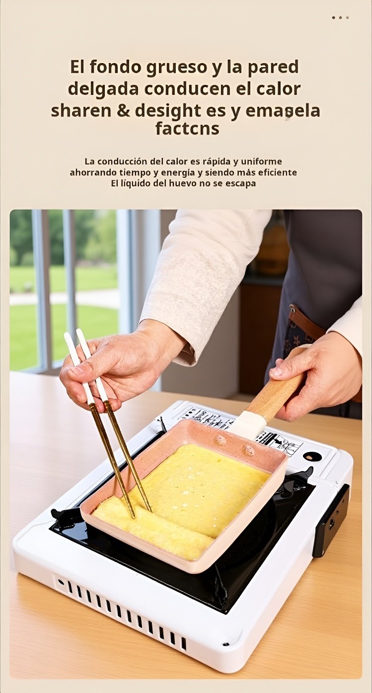 ● Fabricada con piedra Maifan, esta sartén cuadrada ofrece una superficie antiadherente superior que facilita la cocción sin que los alimentos se peguen, ideal para preparar platos saludables con menos aceite.