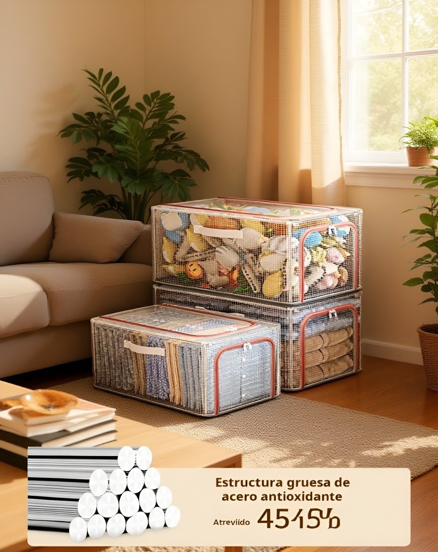Gran caja de almacenamiento transparente y resistente para ropa